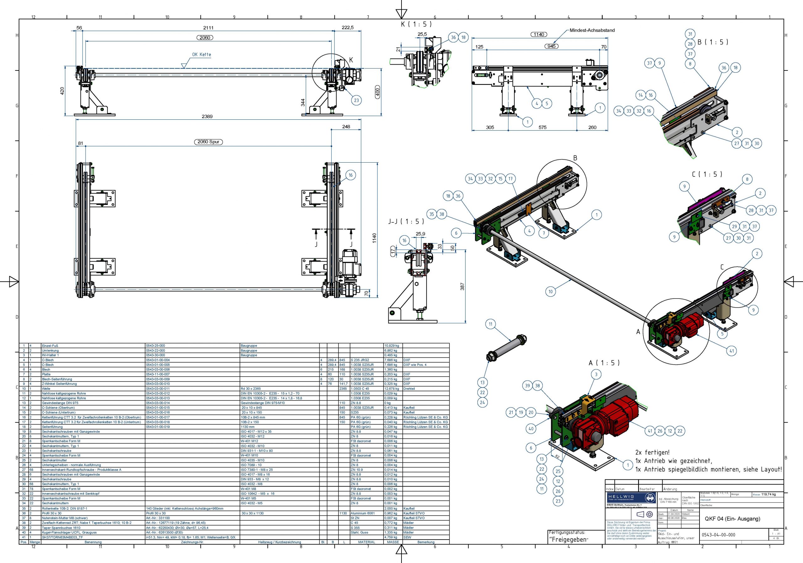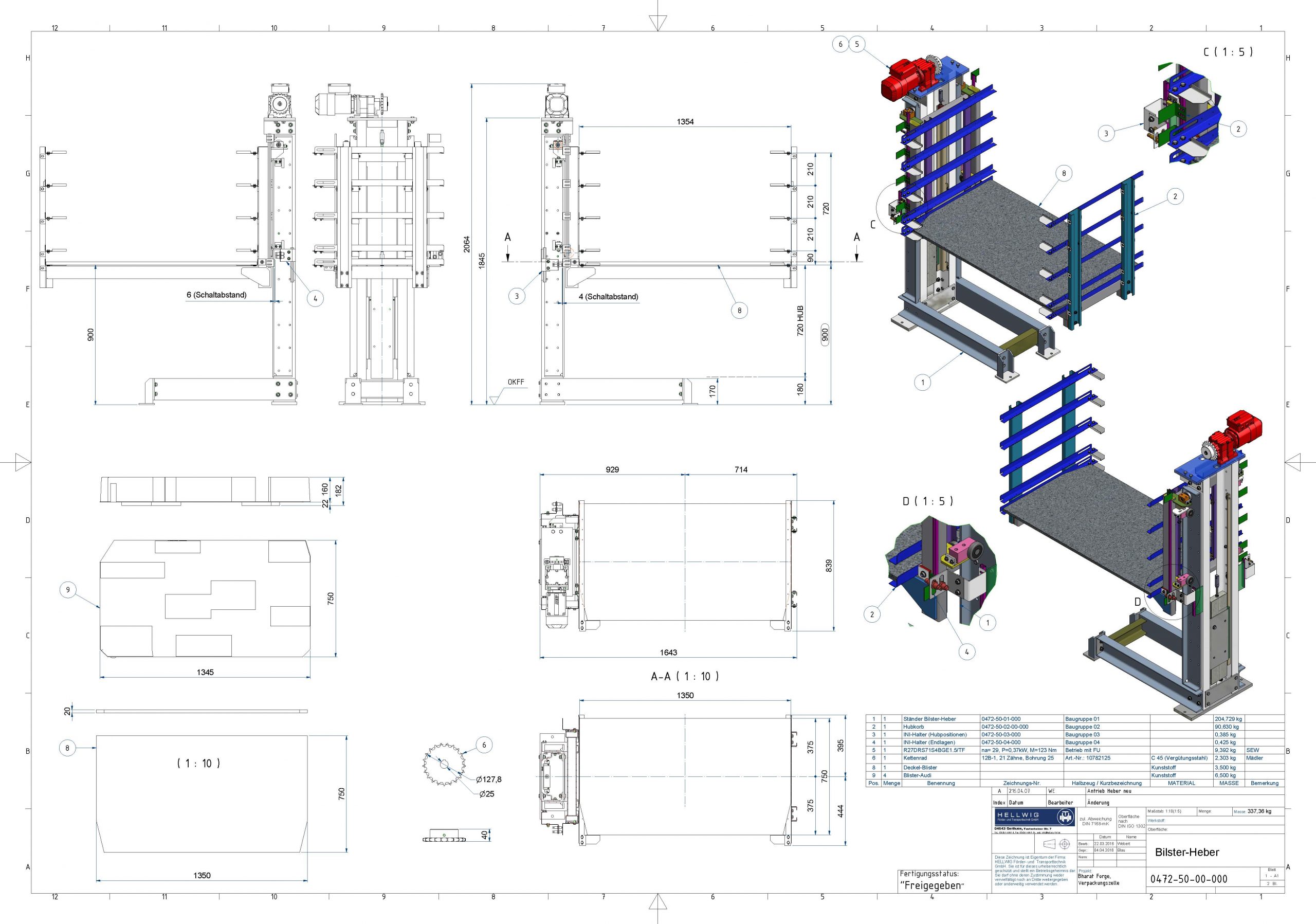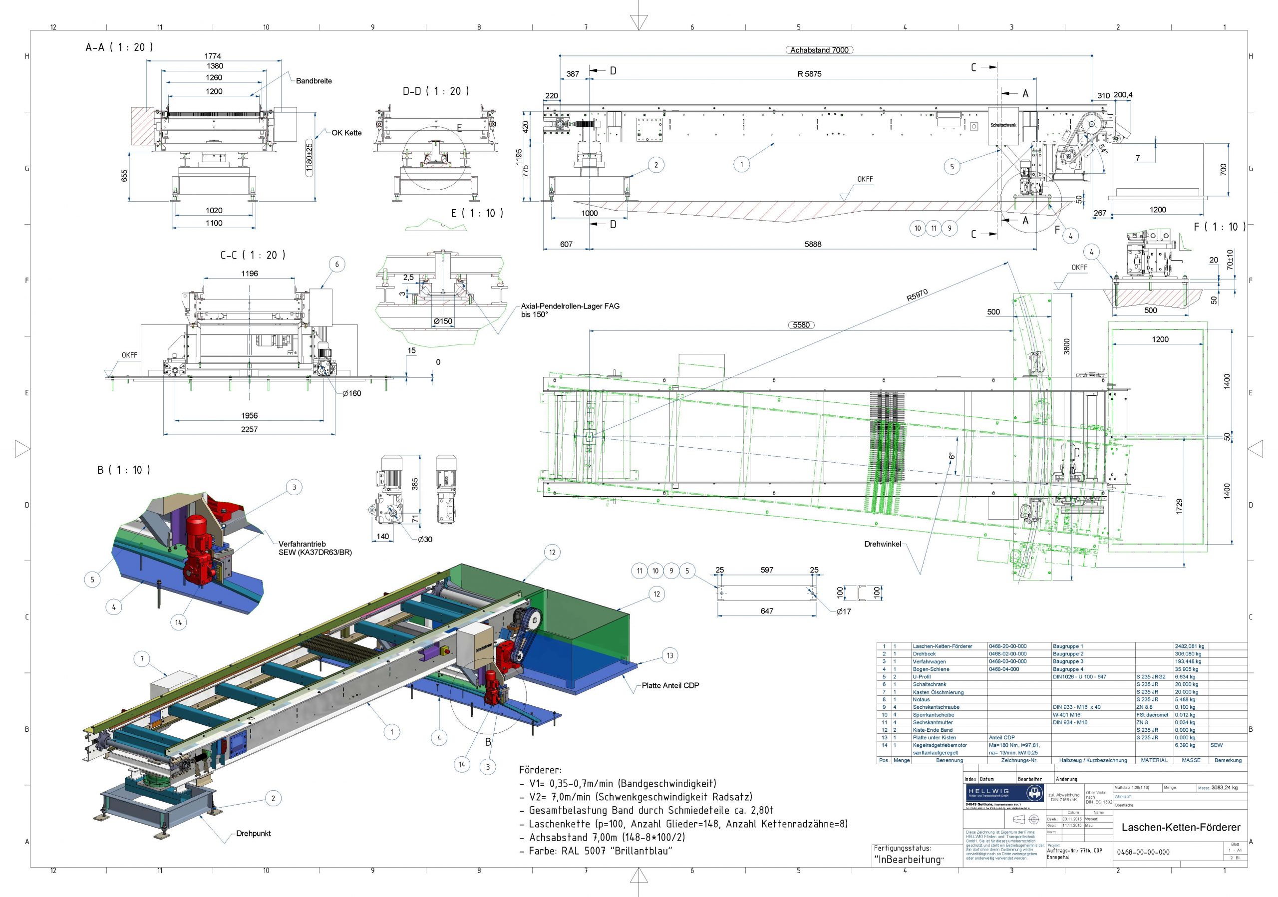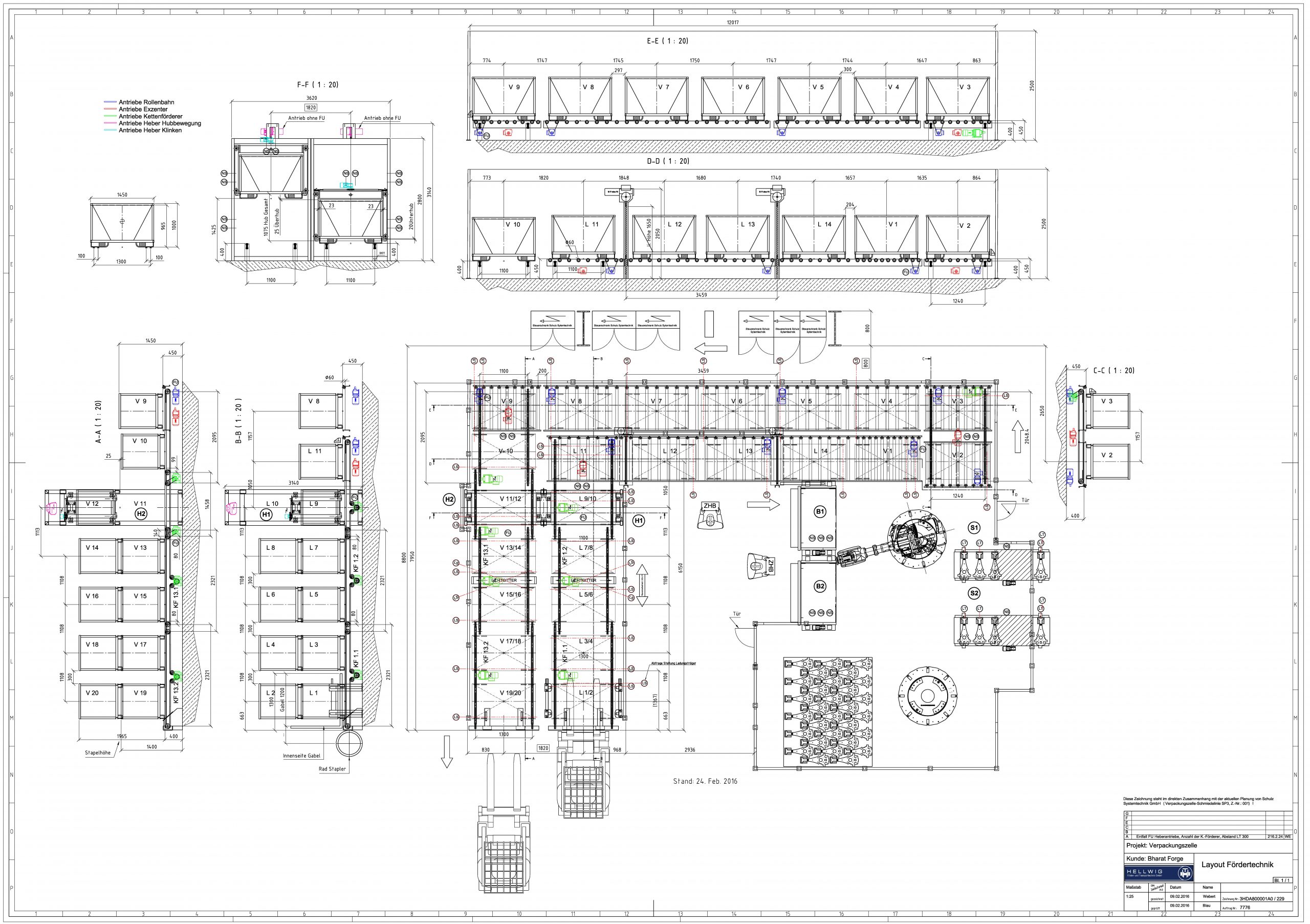 Leistungsumfang: Projektierung, Layouterstellung und Konstruktion einer Fördertechnischen Anlage für Schmiedeteile, Bharat Forge – Brand-Erbisdorf